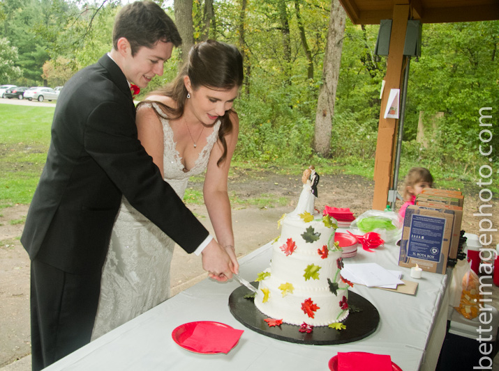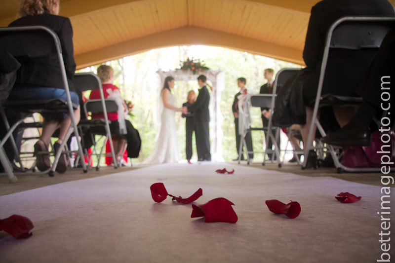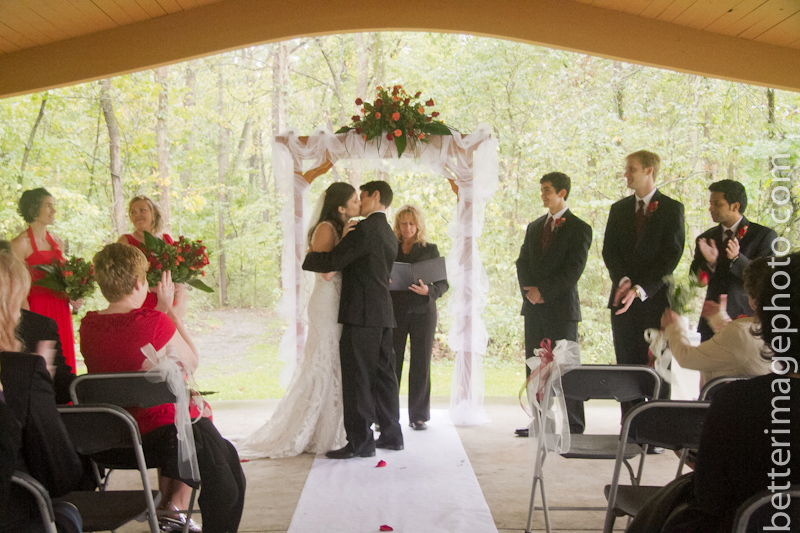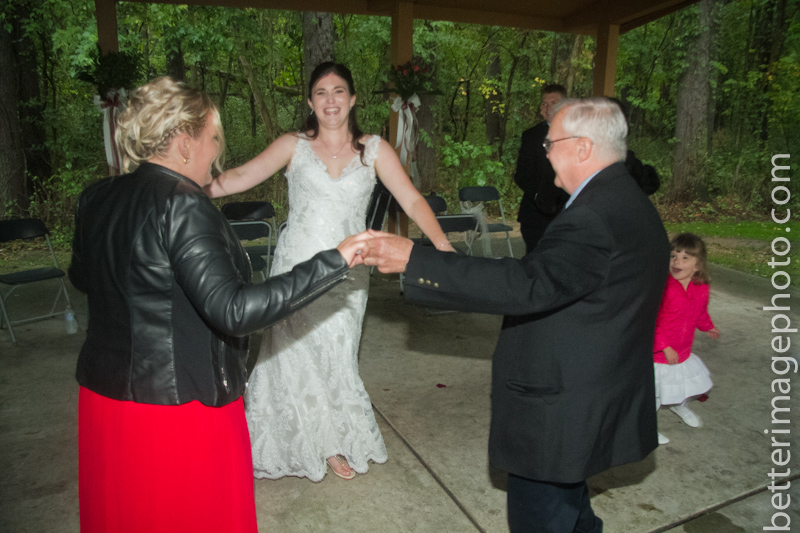 Lauren and Storm wanted a simple outdoor wedding with a small guest list. They gathered under the canopy at the forest preserve. When I showed up, they were all huddled under the shelter from the rain. By the time the ceremony had finished, the rain did stop and we ventured out of the shelter, just long enough to let their heals fall into the soaked soil.
