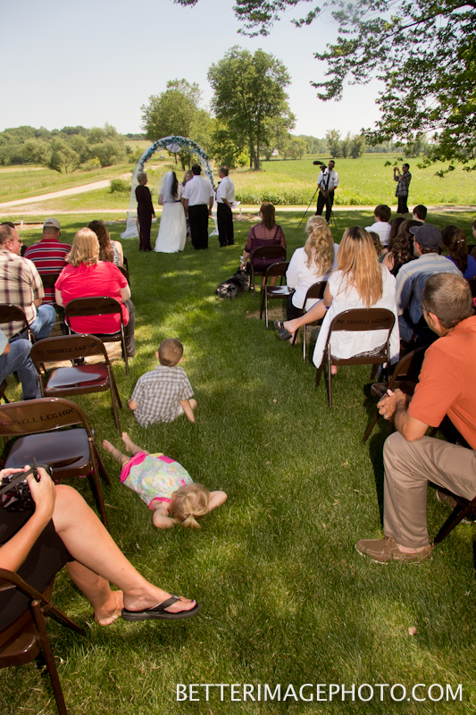 own post office, but not big enough to have a stop light or to post their population on the city limits sign. It’s about 422 by the way depending on which web site you look at. It’s a place where friends show up and everyone feels like family. It’s a place where the kids feel more at home to lay in the grass and watch the vows exchanged then they do to sit in stuffy suites more appropriate for Easter Morning.